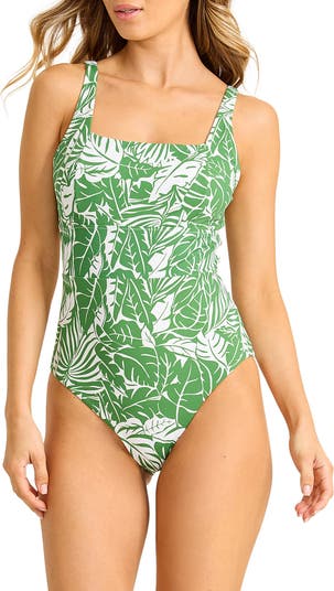 Tropical polish meets practical ease in this one-piece swimsuit designed with UPF 50+ sun protection for long afternoons in the sun.