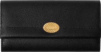 A timeless continental wallet made from grainy calf leather, partially lined in a cotton blend woven with the Burberry Check in our signature sand colourway. The design is finished with topstitching and a check-engraved closure.||Foldover flap with press-stud closure|12 card slots|Zip compartment|Two slip pockets|Hand-painted edges|Brushed metal hardware|Engraved Burberry lettering at front|Burberry Check lining|Comes with a dust bag