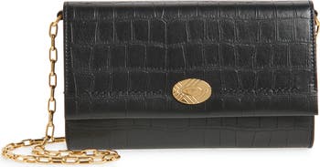 Crafted from croc-embossed leather, this timeless wallet features a compact design that makes it easy to tuck into a larger bag or carry as a clutch. Check-engraved logo hardware and check lining offer signature details, while an attachable chain strap allows you to wear the style as a sleek shoulder bag.