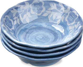 - Introducing the Cottage Melamine Bowl Set of 4 perfect for summer gatherings and gift giving each bowl holds 20 ounces ideal for salads and snacks featuring a vibrant blue multi design that brightens your table these bowls are made from durable BPA-free melamine and are dishwasher safe for easy cleanup measuring 7 inches in length and width and 2 inches in height they combine style and practicality making them a delightful addition to any kitchenware collection.