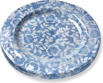Cottage Blue White Flower Melamine Dinnerware Plates Set 4