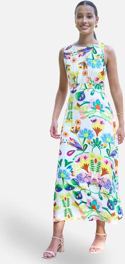 Made from lightweight cotton for a summer feel this maxi dress from Yumi is the ultimate holiday dress. In a simple and elegant midi shape, with all over abstract print and that gorgeous tie in the back for extra details. Wear with sandals and a wicker bag to complete the look.
