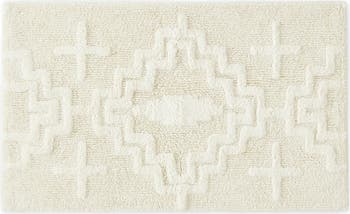 Chunky loops and plush geometry give a cloudlike feel to this cotton bath rug.