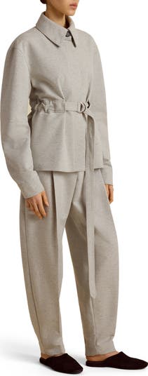 This season boasts a modern take on the bomber jacket. A light-weight cotton-silk blend is cut with a waist-defining belt and subtle cocoon-shaped sleeve, marrying the sensibility of masculine tailoring with an ultra-feminine silhoeutte. Pair with the Cocoon Trouser for an effortless day-to-evening sensibility.