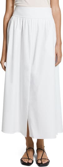 Made of a crisp cotton blend, this midi skirt is perfect for laid-back days with on-seam pockets and a front slit.