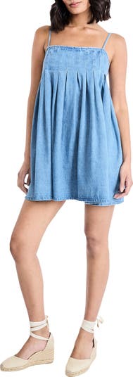 A nipped-in bust releases into a flowy trapeze silhouette on this airy cotton-blend chambray minidress that's destined for sunny days.