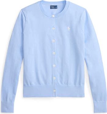 The iconic polo pony authenticates a lightweight cardi knit from a smooth cotton-forward blend.