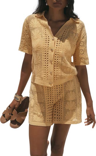 Shell patchwork crochet short, in a lightweight material with an elasticated waitband designed to be mid rise.