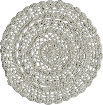 - A piece of handcrafted elegance, this round placemat is crocheted from a natural cotton blend, offering a warm, inviting texture