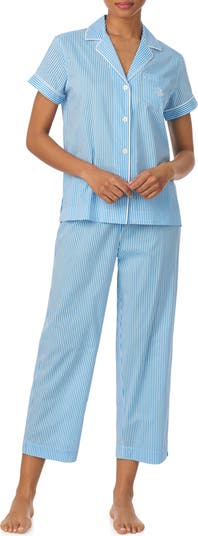 Cut from a cool, lightweight cotton blend, these classically styled crop pajamas ensure your sleep is as sweet as you bedtime look.