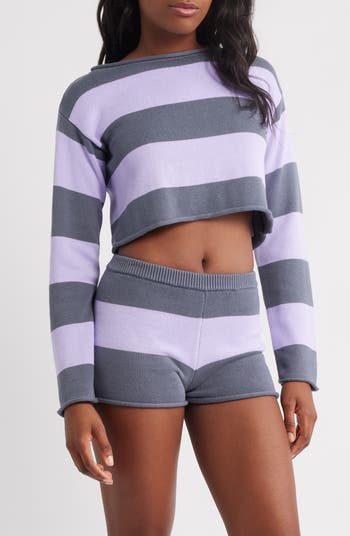 You're ready for rugby season, sweater weather or literally any day of the week with this cropped sweater knit to have rolled edges and patterned in chunky stripes.