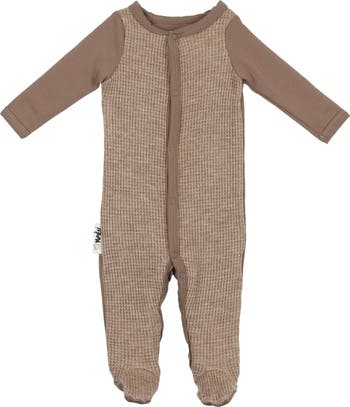 Baby will be feeling cozy in this cotton-blend footie featuring a mix of soft jersey and textured waffle panels.