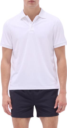 A soft looped texture provides exceptional breathability on a French terry polo complete with ribbed trims and mother-of-pearl buttons.