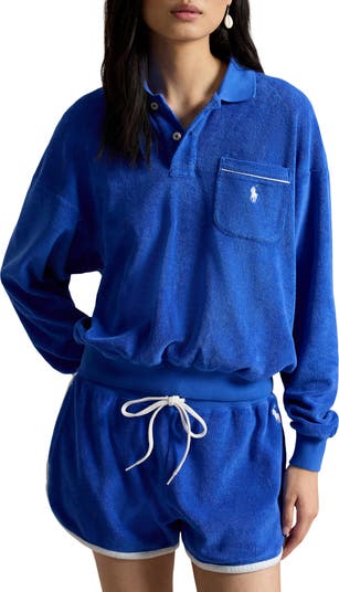 Brighten the beach bonfire when you come through in a vibrant sweatshirt polished with a polo pony and made from cozy cotton-forward French terry.