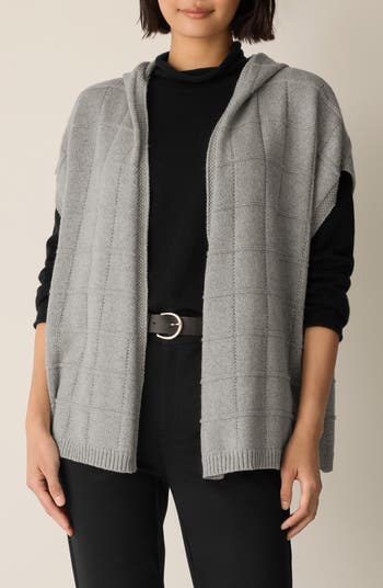 Made from a feel-good blend of organic cotton and recycled cashmere, this hooded poncho is just right for the between season.