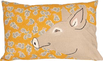 - A charming rectangular pillow featuring a vibrant pig image with intricate embroidery in multicolor