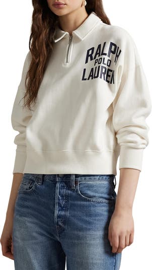 The brand's signature logo boldly marks the chest of this quarter-zip pullover sweatshirt made from a cotton blend that offers an ultrasoft feel.