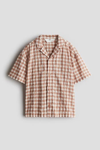 Loose-fit shirt in a soft weave made from a cotton blend. Resort collar, buttons down the front, dropped shoulders and short sleeves.