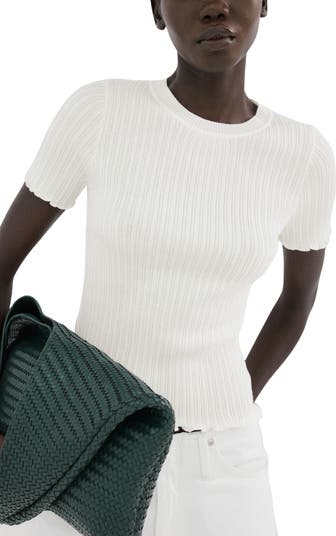 A step up from a classic T-shirt, this top is made from soft and stretchy rib-knit fabric lightened with a dose of fluid viscose.