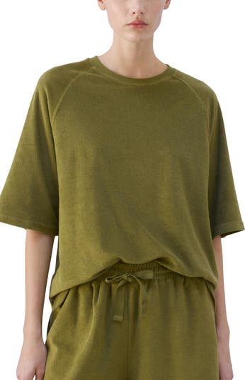 Sweeten your nighttime routine with this cotton-blend terry pajama top that also makes a great lounging piece.