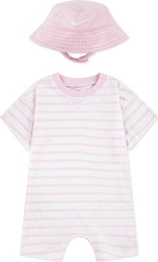 This tagless romper is made of supersoft cotton-blend terry that's cozy and gentle on baby's skin. It's paired with a coordinating sun hat to top off their look.