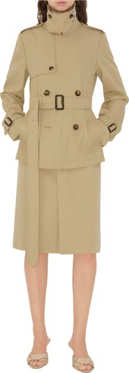Inspired by our heritage styles, a trench jacket made in England from a water-repellent cotton blend twill. Inside is Burberry Check cotton, used to line our coats since the 1920s. The design is cut to a slim fit with a belt to adjust the silhouette.||Double-breasted button closure|Hook-and-bar collar closure|Throat latch|Epaulettes|Belt|Side welt pockets|Belted cuffs|Burberry Check undercollar and lining|Comes with a garment bag