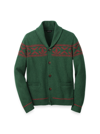 Cotton Button Front Fair Isle Shawl Collar Cardigan Sweater