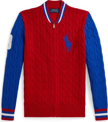 Soft cotton cables bring classic style to a zip-front cardigan finished with a signature embroidered polo pony logo.