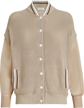 - Snap closureRibbed collarUnstructured shoulderShirt-style cuffsRib knit hemVertical hand pocketsEnglish rib