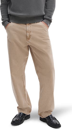 Sitting right at the hips and puddling casually at the hems, these well-faded cotton jeans sport a roomy fit that keeps you feeling as relaxed and comfortable as you look. Carpenter pocketing adds working-inspired details to the hardly-working vibe.