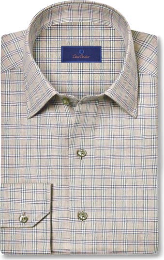 A soft cotton-and-cashmere twill patterned in checks brings elevated detailing to a sport shirt designed with a simple French placket for a smart, streamlined look. Crafted with pearly buttons and a luxe feel, it makes a versatile, all-season addition to your semiformal wardrobe.