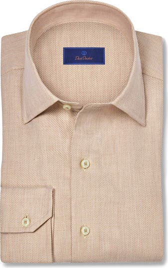 A soft cotton-and-cashmere twill patterned in subtle diagonal stripes brings elevated detailing to a sport shirt designed with a simple French placket for a smart, streamlined look. Crafted with pearly buttons and a luxe feel, it makes a versatile, all-season addition to your semiformal wardrobe.