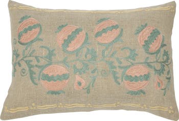 - This whimsical lumbar pillow features a delicate garden-inspired design, intricately embroidered on soft cotton chambray