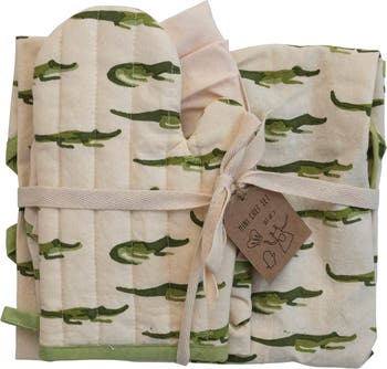 Multicolor cotton child apron with alligator print; Machine Wash; Add a playful touch to baking time with this darling cotton apron; Made from 100% cotton; Apron measures 18" L x 20" W x 24" H