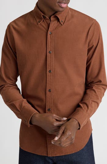 Soft cotton corduroy with a touch of natural stretch brings texture and warmth to a shirt designed in a versatile solid with a buttoned collar and a curved hem that stays tucked and looks great when you leave it out. Wear it on its own or layered and open to change up your style without losing your comfort.