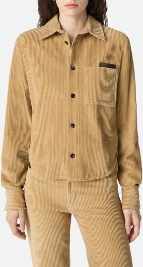 Subtle 'V' details and a leather tab at the pocket bring signature BV flair to this button-up shirt cut from velvety wide-wale cotton corduroy.
