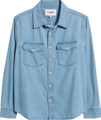 Well-faded cotton denim underscores the relaxed workwear vibe of a shirt with a midweight feel and a low hem that works tucked or untucked. Wear it on its own or layered and unbuttoned to change up your look without losing your comfort.