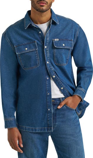 Perfectly faded cotton denim makes an easy favorite of a snap-up that's sized with room to layer like an overshirt or wear like a lightweight jacket. The straight hem and pointed collar add elevated detailing to the casual, go-to look.
