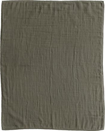 - Olive cotton double cloth baby blanket with trim in bag