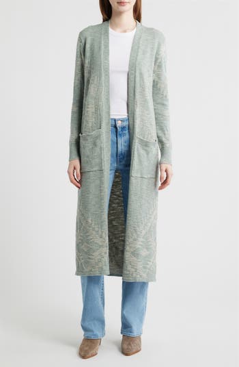 Conjure the cozy vibes of a crackling fire in this longline cotton cardigan with a Southwest-esque pattern that tips a hat to Pendleton's Western heritage.