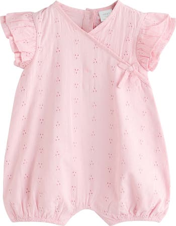 Sweeten baby's warm-weather wardrobe with this wrap-inspired romper made from fresh cotton eyelet and framed by playful ruffle sleeves.