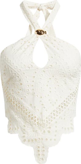 Sugar meets spice in a cotton eyelet top cut to skim curves and show some serious skin.