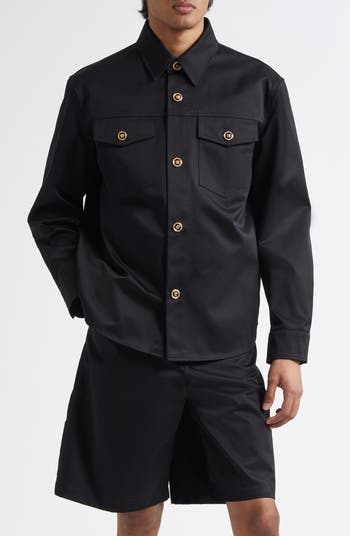 Golden Medusa hardware adds heritage style and a luxe element of contrast to this structured overshirt tailored from durable cotton gabardine.