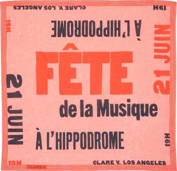 Complete your music-festival ensemble with this chic bandana that's done up in a newsprint-look poster graphic.