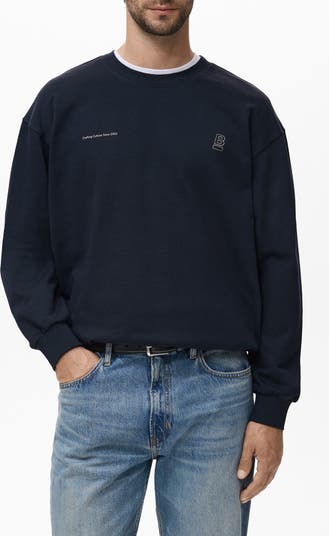 MANGO Cotton Graphic Print Sweatshirt, Main, color, Navy