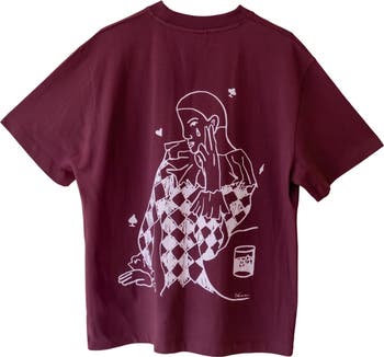 This TBCo tee features a hand screen-printed graphic on the back and a subtle embroidered motif on the front. With an oversized fit and high collar for necklace stacking, it’s a bold layer built to last.