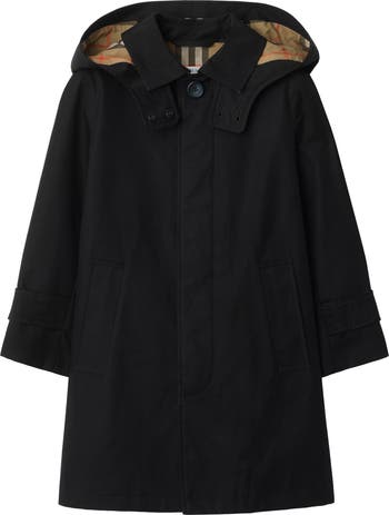 A car coat made from cotton twill with a concealed button closure. The design features a detachable hood and is lined with the Burberry Check in our signature sand colourway.||Single-breasted button closure|Detachable hood|Side welt pockets|Button-tab cuffs|Back vent|Burberry Check undercollar and lining