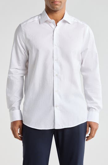 Tailored from a cotton jacquard fabrication, this long-sleeve button-up shirt features a tonal texture that brings depth and subtle dimension.