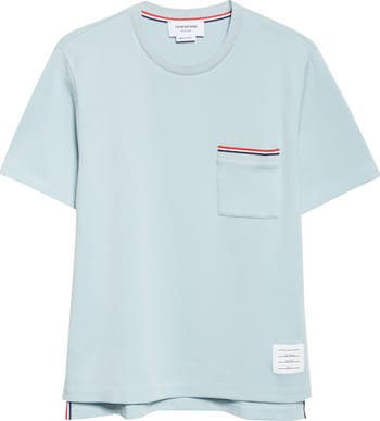 An elevated classic and a staple of any casual wardrobe, this all-cotton T-shirt features a smartly tailored profile and RWB ribbing crowning the single chest pocket. The stepped hem finishes the look with iconic Thom Browne signatures: buttons and RWB grosgrain incorporated in the vents and a name-tag patch appliquéd below the waist.