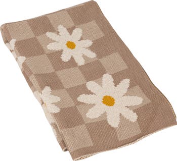 - A soft rectangular baby blanket featuring a charming check pattern sprinkled with cheerful daisies in a multicolor knit